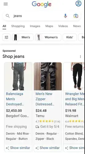 W zagranicznych reklamach produktowych, Google testuje nowy przycisk “Pokaż podobne” („Show similar”), pozwalający na wyświetlanie produktów pokrewnych i zbliżonych.
