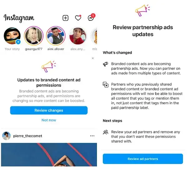 Instagram aktualizuje zasady dotyczące marketingu afiliacyjnego, a także zmienia nazwę swoich reklam z treściami markowymi na reklamy partnerskie, aby lepiej informować o zmieniającym się podejściu do tego tematu. Dzięki zmianie Instagram umożliwi markom promowanie większej liczby rodzajów treści tworzonych przez użytkowników w aplikacji, a nie tylko postów, oznaczonych etykietą „płatne” czy „sponsorowane”. Zapewni to markom nowe sposoby zarabiania na UGC, a jednocześnie da twórcom więcej możliwości nawiązywania partnerstw biznesowych, poprzez rozszerzenie puli potencjalnych partnerów reklamowych, którzy mogą łączyć się z nimi na podstawie ich postów.