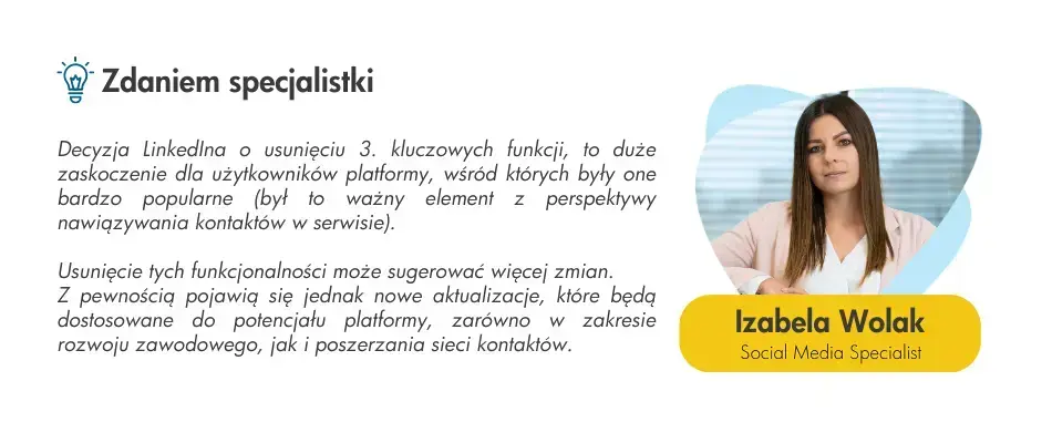 LinkedIn usunął 3 kluczowe funkcje: karuzele, filmy profilowe i linki w obrazie. Posty karuzelowe, które generowały zaangażowanie, zostaną usunięte, ale obecne publikacje wciąż będą widoczne. Użytkownicy mogą kontynuować publikowanie karuzeli za pomocą plików PDF. Filmy profilowe, które zostały wprowadzone w 2021 roku, również zostaną usunięte, ponieważ nie zdobyły dużego zainteresowania ze strony internautów. Opcja dodawania klikanych linków do zdjęć i filmów również zostanie wycofana. Dokładne przyczyny tych zmian nie są wyraźnie wymienione w ogłoszeniu. Możliwe, że firma ma na celu np. usprawnienie obsługi użytkownika.