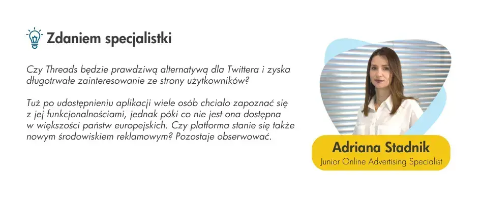 W świecie PPC wiele mówi się m.in. o Threads, jako o potencjalnie nowym środowisku reklamowym, którym aplikacja może stać się w przyszłości. I choć póki co platforma nie jest dostępna dla użytkowników na terenie państw unijnych, to już budzi spore zainteresowanie.