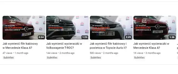 Dobrym rozwiązaniem może być także traktowanie YouTube, jako multimedialnego bloga, będącego miejscem do przedstawienia klientom asortymentu swojego sklepu, w sposób praktyczny. Tutaj trzeba jednak uważać, by nie wpaść w pułapkę, związaną z promowaniem – nie – własnej firmy i jej eksperckości w danej dziedzinie, ale marek, których produkty są przez nią dystrybuowane. Treści mogą mieć m.in. postać edukacyjnych tutoriali, co doskonale obrazuje tematyka, poruszana na kanale marki iParts.pl w serwisie YouTube: