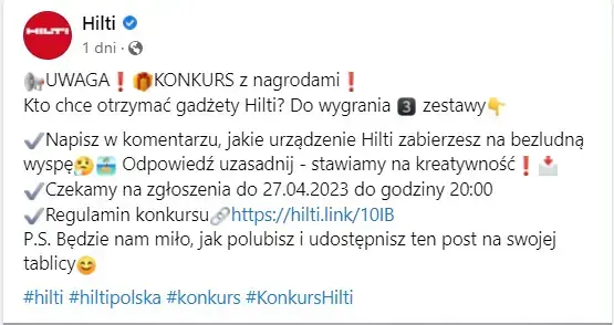 Źródło: Profil marki Hilti na Facebooku.