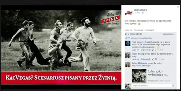 Na profilu firmy opublikowana została kreacja, do której stworzenia wykorzystano autentyczne zdjęcie wykonane w trakcie strajków w Lubinie w 1982 roku. Na fotografii przedstawiono grupę mężczyzn, niosących swojego śmiertelnie postrzelonego kolegę. Tymczasem na profilu marki, zdjęcie to miało przedstawiać pijanego człowieka, niesionego przez innych mężczyzn. Dodatkowo całą kreację opatrzono napisem ”KacVegas? Scenariusz pisany przez Żytnią” oraz komentarzem ”Gdy wieczór kawalerski wymknie się spod kontroli. Wina Żytniej?”.
