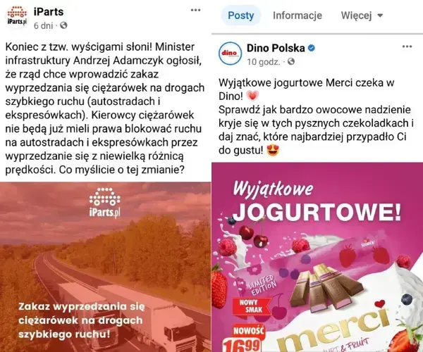 Źródło: Fanpage marki Dino Polska oraz Fanpage marki iParts na Facebooku.