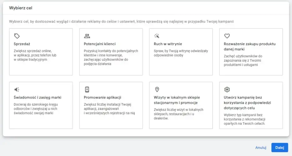Ten rodzaj kampanii bazuje w 100% na zaimplementowanych na koncie Google Ads konwersjach. Oznacza to, że: