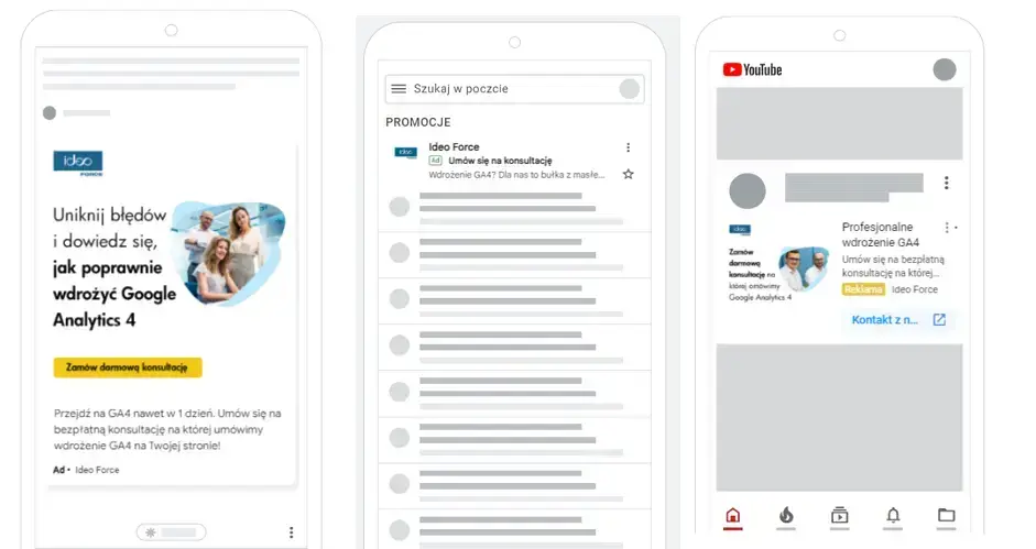 Google to bez wątpienia najpopularniejsza i najczęściej wybierana wyszukiwarka internetowa na świecie. Główny czynnik, który sprawia, że kampanie Google Discovery Ads są niezwykle skuteczne, to sposób określania grupy docelowej. Bazowanie na zainteresowaniach oraz wcześniejszych zapytaniach użytkowników daje możliwość dotarcia do osób, których uwagę naprawdę można przyciągnąć, co przekłada się na realne efekty (np. zwiększenie sprzedaży w sklepie internetowym). W Ideo Force prowadzimy kompleksowe działania reklamowe w ekosystemie Google Ads. Nasze kampanie maksymalizują konwersje, przekładając się na realizacje założeń strategii naszych klientów, zarówno tych działających w sektorze B2B, jak i B2C.