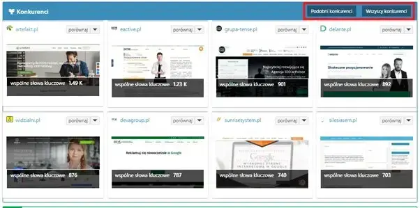 Oba narzędzia, na podstawie swoich algorytmów dostarczają nam informacje o stronach, które zostały wytypowane, jako nasza główna konkurencja. Jest to ciekawa opcja dla użytkowników działających w branżach, w których istnieje bardzo wiele podmiotów świadczących te same usługi. Ale również, kiedy sami do końca nie wiemy, które z tych witryn uznać za bezpośrednią konkurencję.