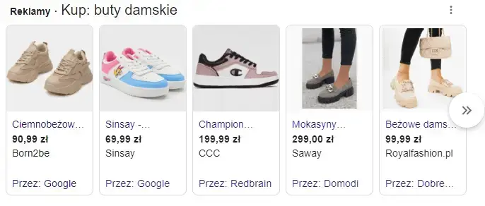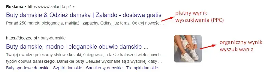 Ostatnim typem wyników, jakie możemy znaleźć w wyszukiwarce są wyniki płatne. Mogą przybierać różną formę, dostosowywaną ręcznie przez specjalistę, między innymi kafelków z produktami, lub wyników, które wyglądają zupełnie jak organiczne, jednak znajduje się przy nich niewielki podpis „Reklama”. Jak sama nazwa wskazuje płatne wyniki wyszukiwania wymagają określonego budżetu, który może wynosić więcej lub mniej w zależności do tego, jakie efekty chcemy uzyskać i jak konkurencyjna jest nasza fraza.