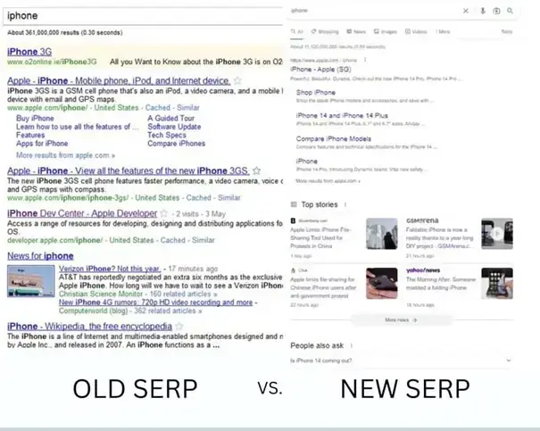 Od tego czasu SERP ciągle ewoluują. W 2009 roku Google wprowadziło „Uniwersalne wyszukiwanie”, które integruje różne typy treści, takie, jak: