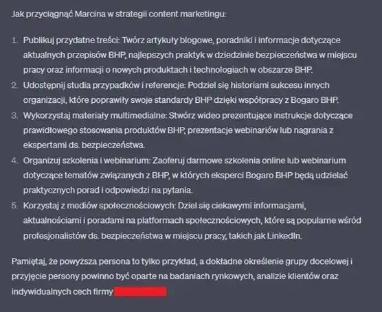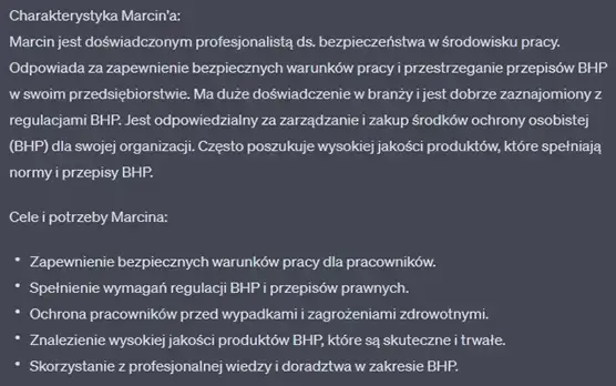 Dlatego też, wykorzystując ChatGPT-4 dostajemy niejako szansę poznania swojej grupy docelowej, do której kierujemy ofertę usług czy produktów. A wszystko dlatego, że to narzędzie od AI umożliwia analizę rynku, na podstawie której można stworzyć obraz persony klienta.