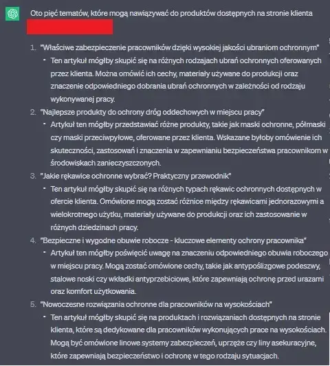 Niezależnie od tego, w jakiej branży działamy, ChatGPT-4 od firmy Open AI może wspomóc prace przy generowaniu angażujących oraz wartościowych treści na stronę internetową. A wszystko dlatego, że to narzędzie uczenia maszynowego posiada możliwość tworzenia contentu, który odnosi się do zaproponowanych mu zagadnień. W tym miejscu warto zaznaczyć, że na ten moment nie pojawiły się zastrzeżenia od strony zespołu Google, co do tworzenia treści z zastosowaniem technologii Al. Wątpliwości poddano jakość oraz przydatność opisów dla użytkownika pod kątem E-A-T (Expertise-Authoritativeness-Trustworthiness), czyli aspekty związane ściśle z oceną jakości witryny.