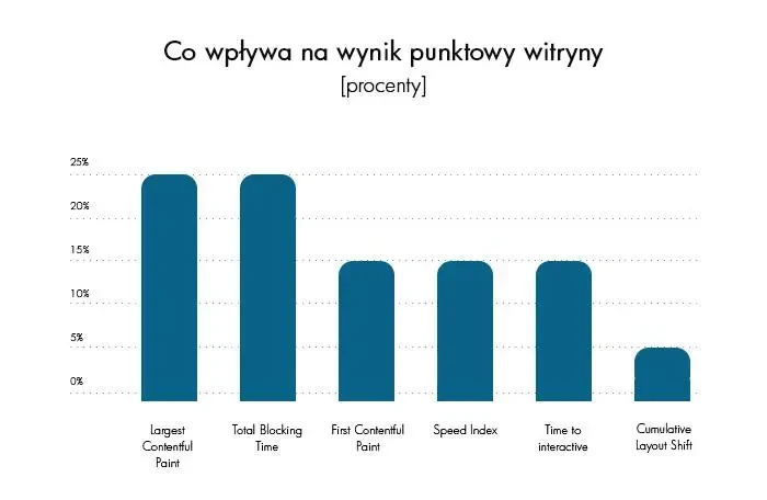 Wykres przedstawiający wpływ poszczególnych wskaźników na finalną punktowa ocenę strony