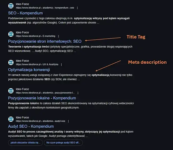Meta tagi to pierwsze, co zobaczy użytkownik w wynikach wyszukiwania. Ich optymalizacja jest kluczowa dla poprawy CTR (Click-Through Rate) i widoczności w SERP-ach (Search Engine Results Pages).